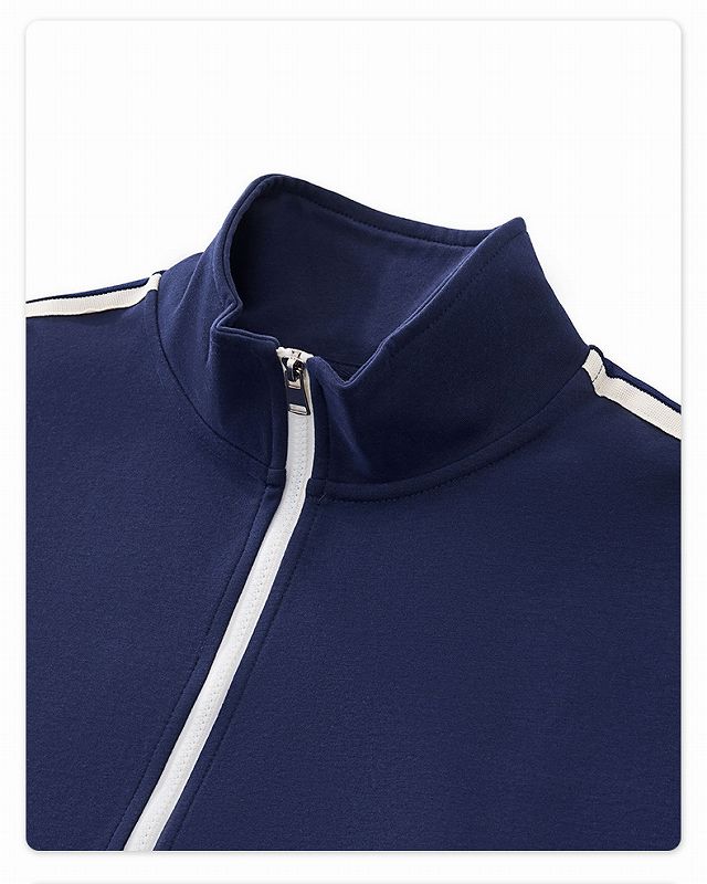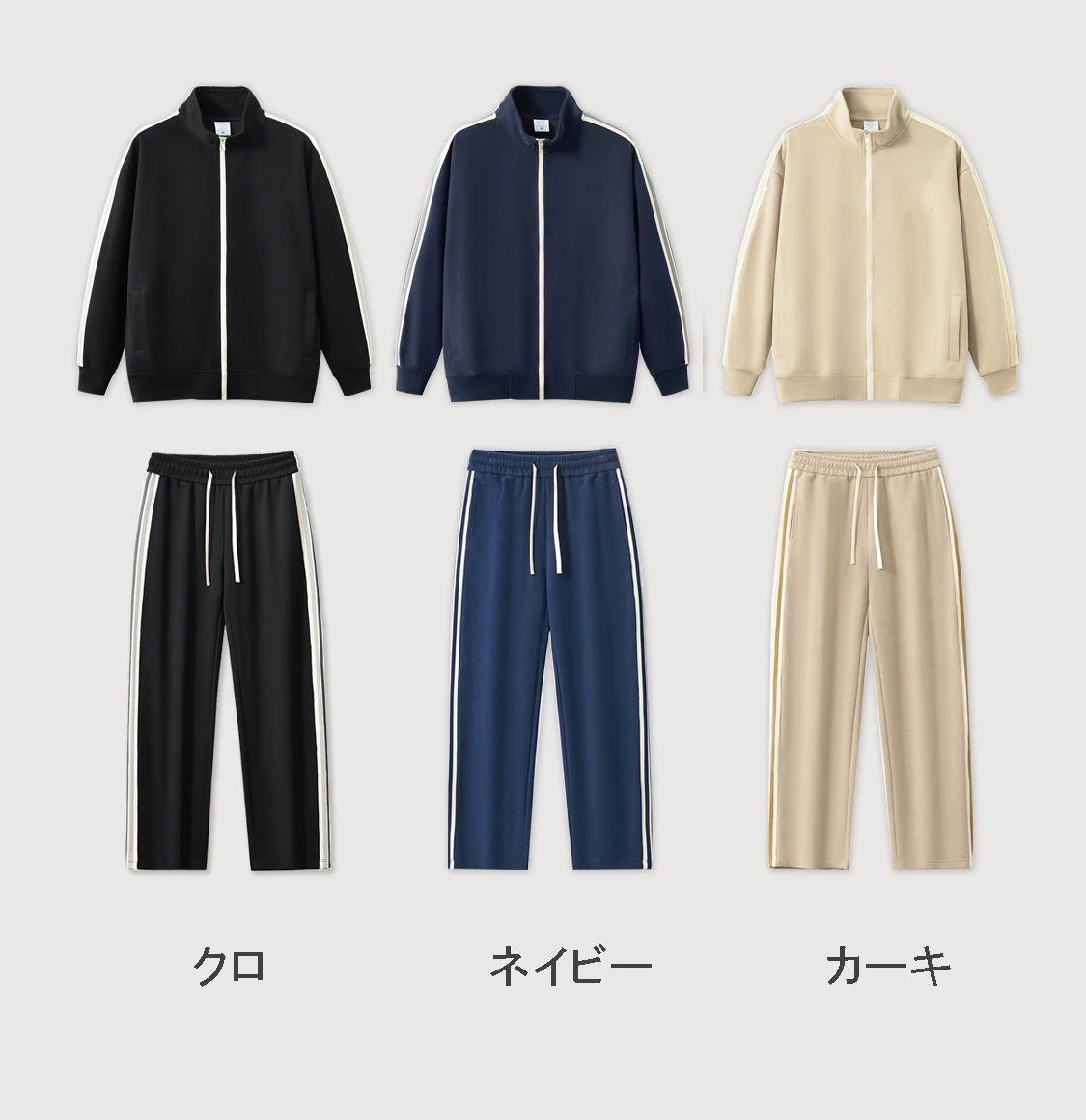 ジップアップジャケットとストレートパンツの上下セット。