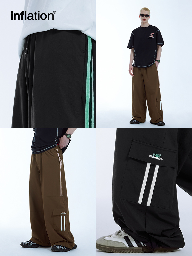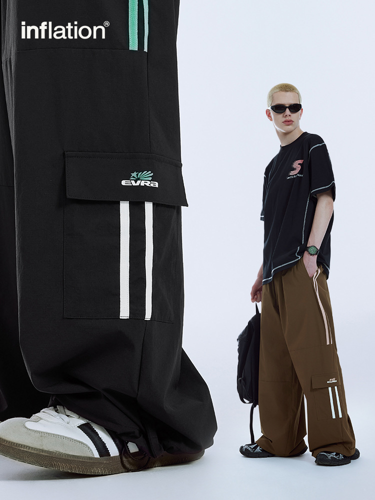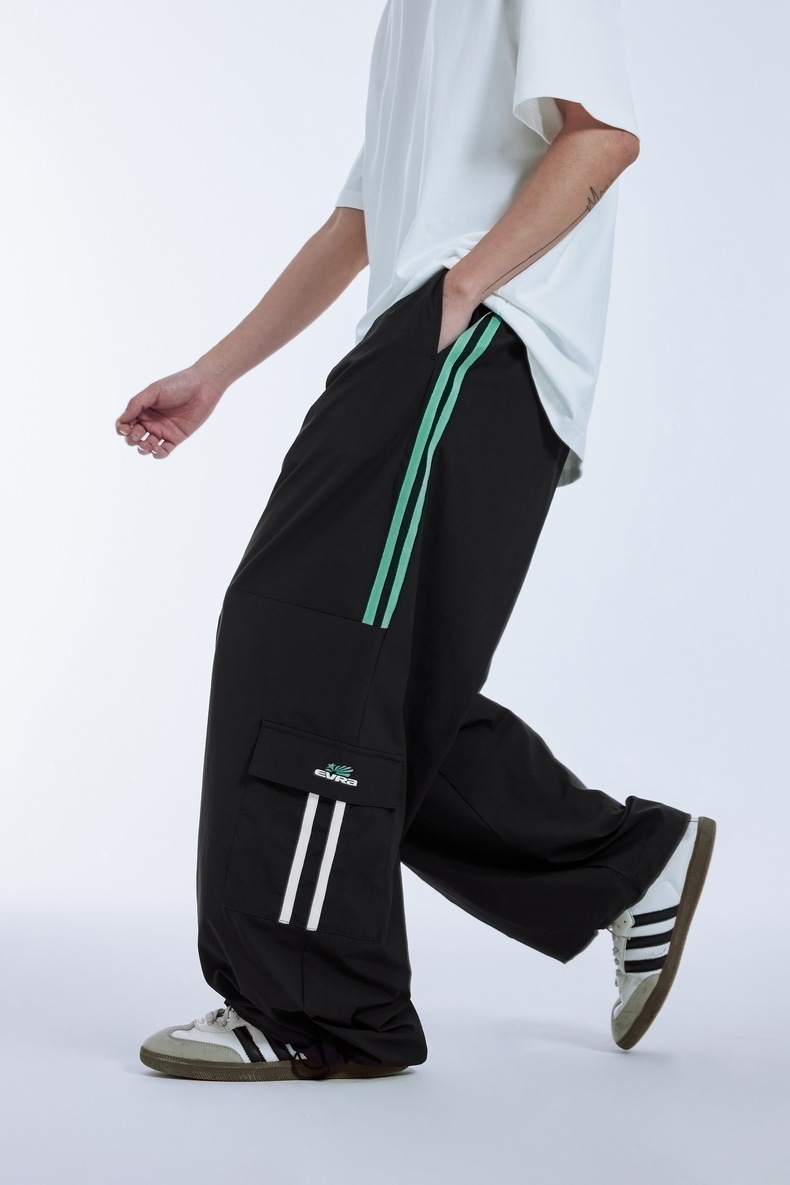ゆったりとしたシルエットで動きやすく、サイドのカーゴポケットが実用的。