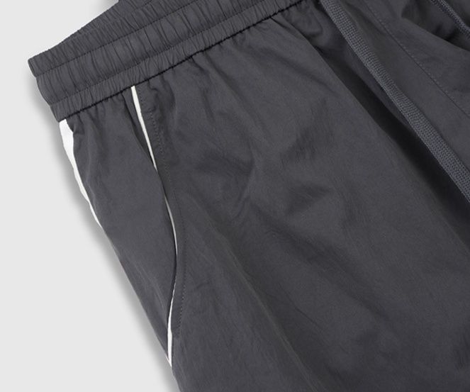 両サイドに入った白いラインがスポーティな雰囲気を演出するナイロン素材のメンズジャージです。